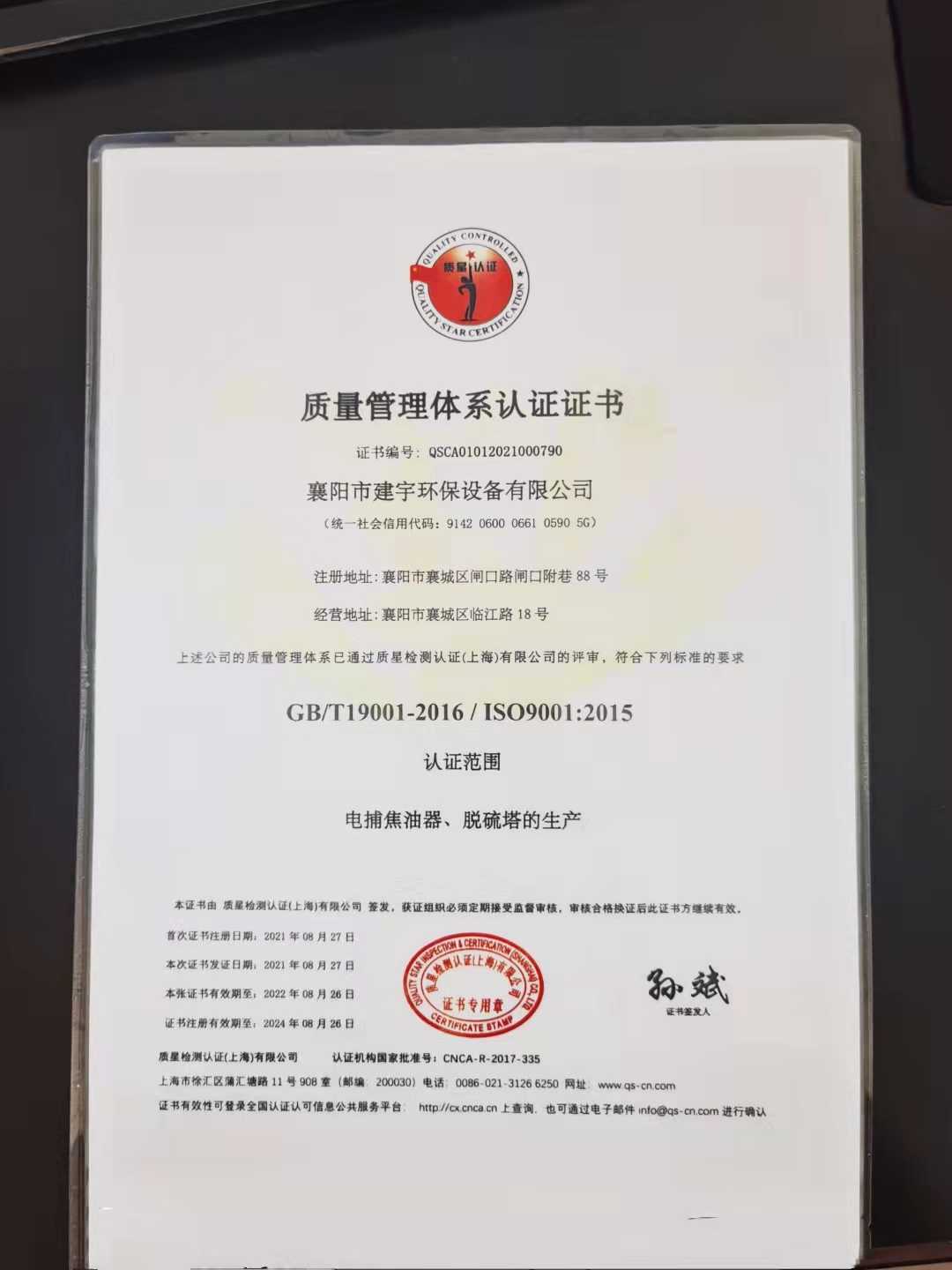 質(zhì)量管理體系認(rèn)證證書